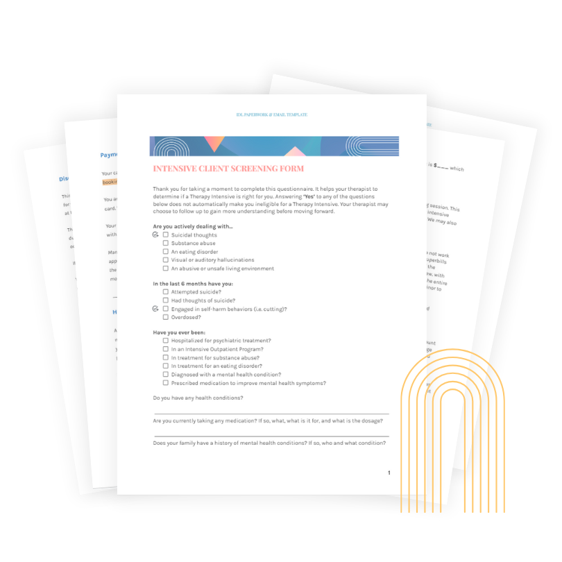 Paperwork Bundle (includes Therapy Intensive Client Screening Form & email templates for responding to new inquiries, current clients & colleauges/referral sources)